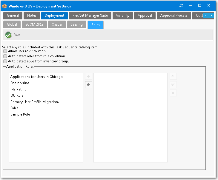 • On the left pane of the Application Roles list, all available roles that are not currently assigned to the task sequence are listed.